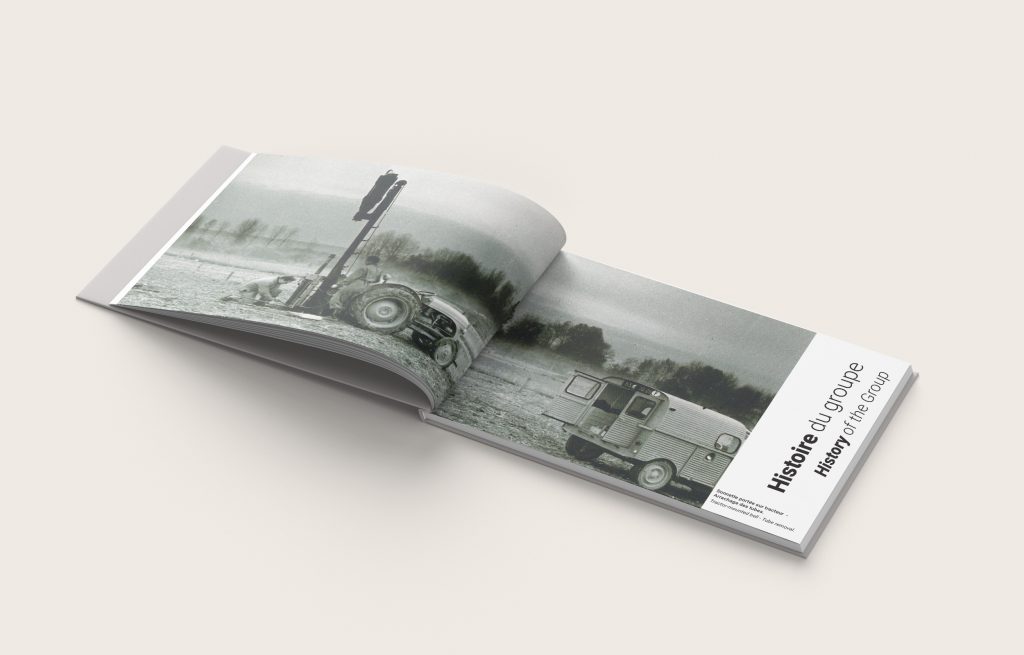J’ai imaginé une maquette sobre, élégante et rythmée, à l’image de son histoire. La conception graphique s’est articulée autour d’un équilibre entre passé et présent : une mise en page structurée, ponctuée de respirations visuelles, qui laisse dialoguer les textes avec les nombreuses archives photographiques. La palette chromatique, discrète et contemporaine, met en valeur les contenus sans les dominer. Une attention particulière a été portée à la hiérarchie typographique pour guider la lecture, tout en valorisant les témoignages et les temps forts. Ce livre est pensé comme un objet mémoriel vivant : lisible, sensible, et ancré dans une continuité visuelle respectueuse de l’identité du Groupe.
